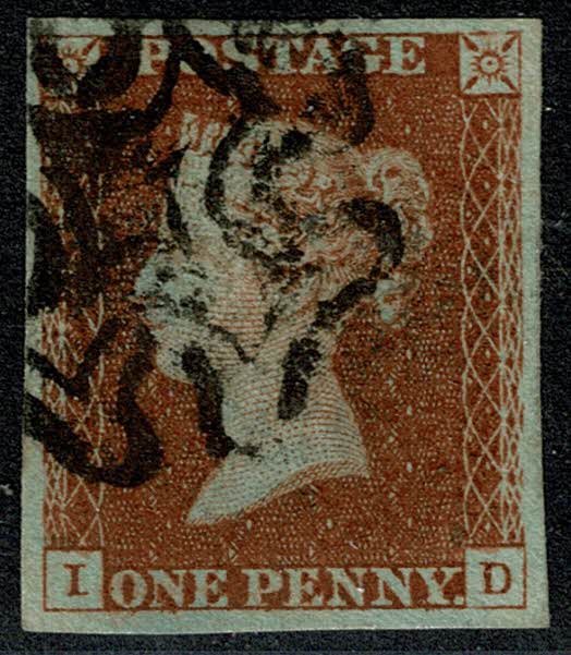 1841 1d Red "ID" Plate 25. Black MC. 4 margins.. As illustrated.