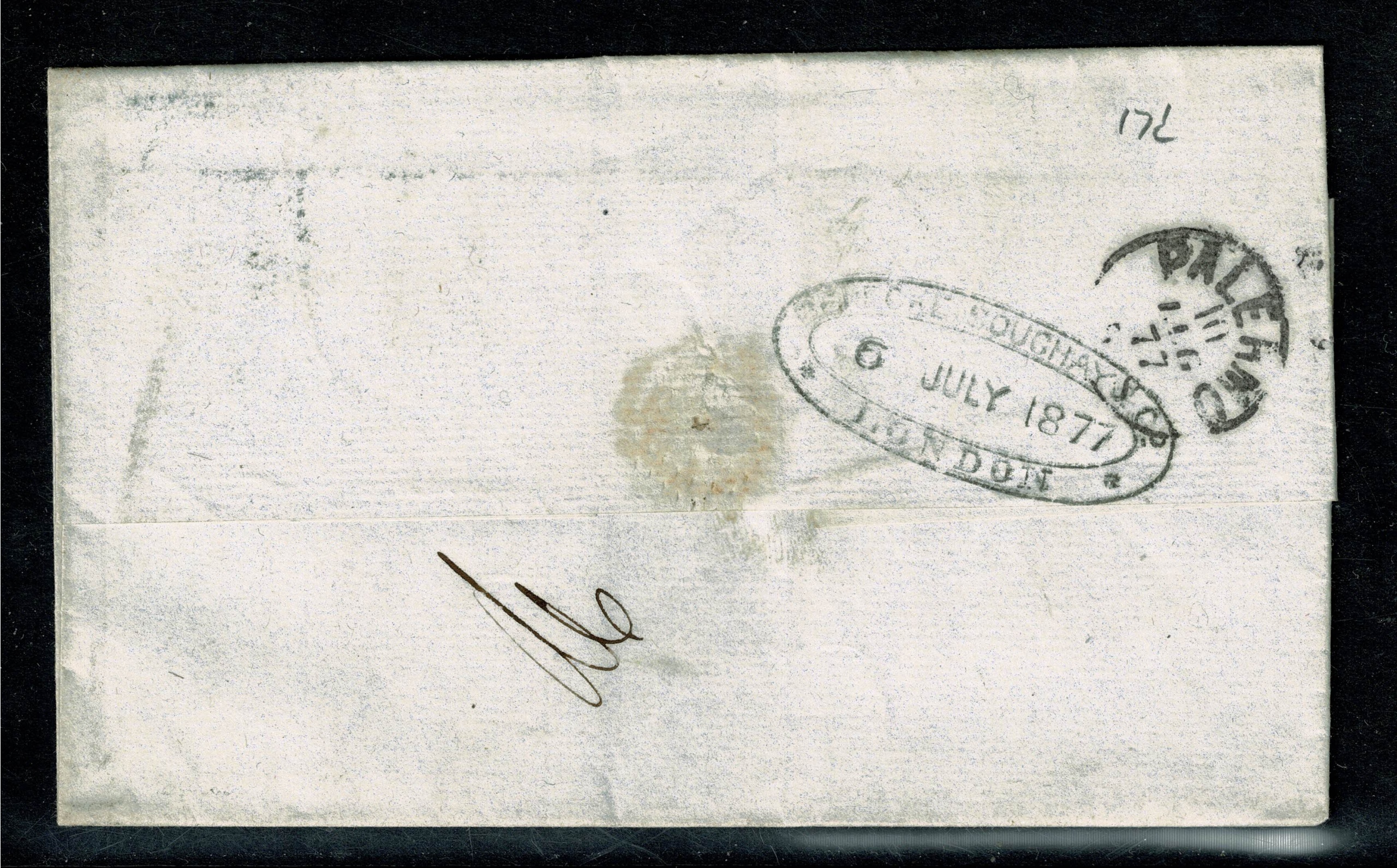 1877 2½d rosy-mauve plate 7. Used on entire. London 9 (Kentish Town) duplex cancel. SG 141.