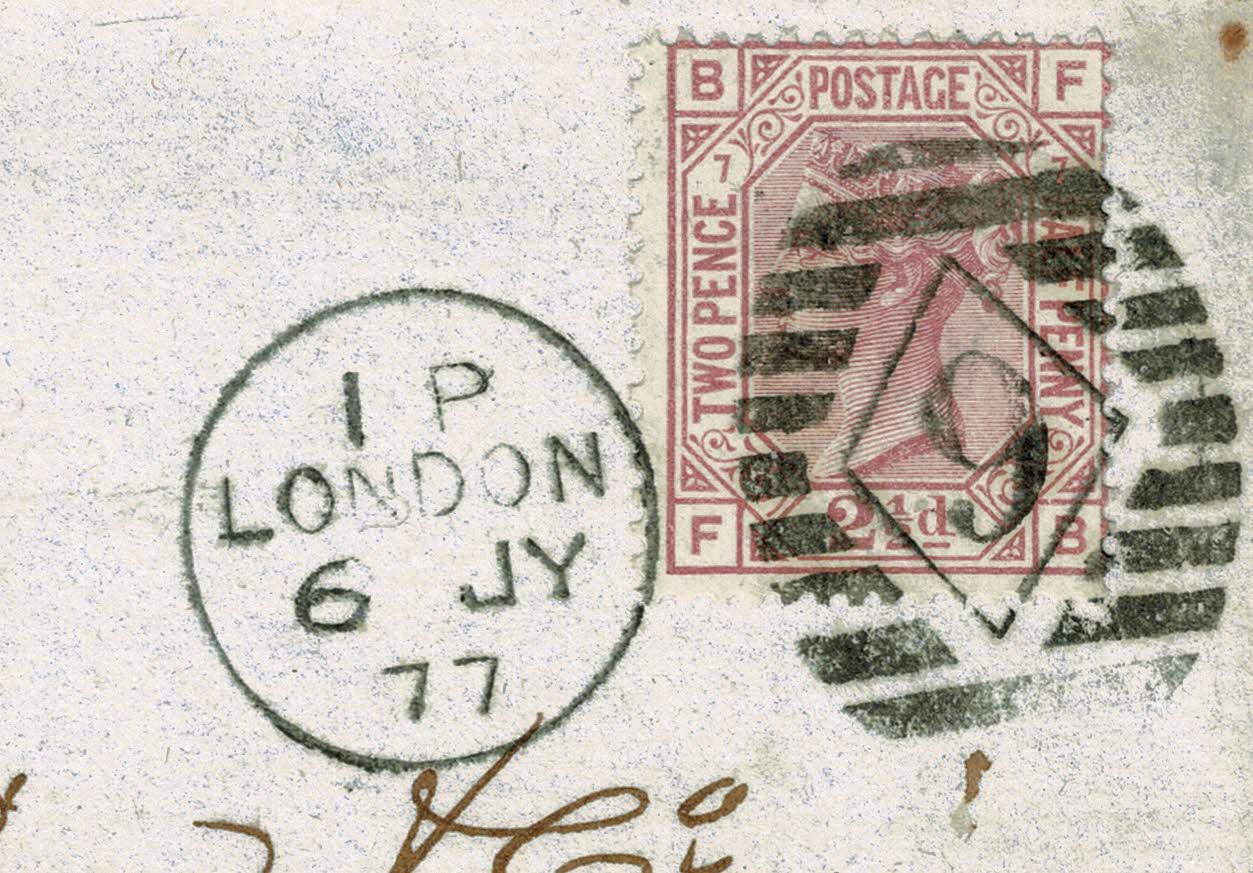 1877 2½d rosy-mauve plate 7. Used on entire. London 9 (Kentish Town) duplex cancel. SG 141. As illustrated
