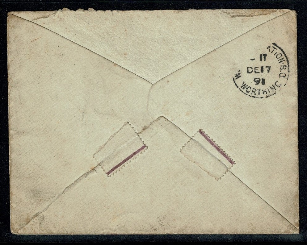 1891 Hand sketched envelope. 1d lilac Die II (SG 172) cancelled by London SW Squared Circle