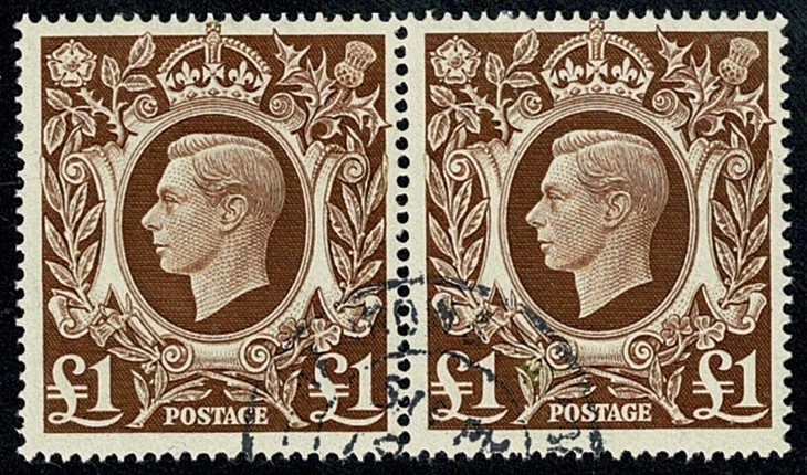 £1 brown. Very Fine Used pair. Light part cds as illustrated.