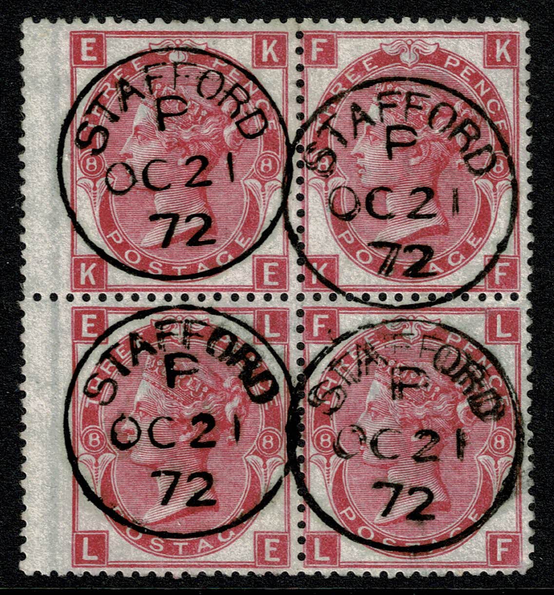 A fine used block of four with clear "STAFFORD OC 21 72" cds. as illustrated.